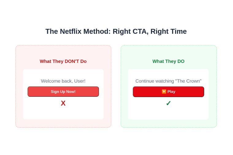 Netflix is a great example of getting this right. When a user logs in and opens the app, the first thing they do not see is a “Sign-Up Now” button, ridiculous though it might sound. Instead, users see Continue Watching or Play because Netflix knows very well the kind of audience it is dealing with. Such clarity in communication keeps people engaged.